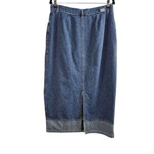 Riveted By Lee Denim Cotton High Waist Long Pencil Straight Midi Blue Jean Skirt Size 14M