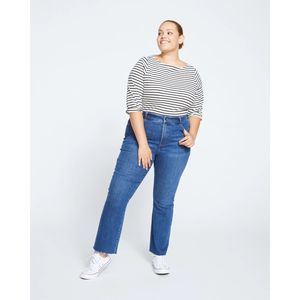 The best-selling Riviera Jeans now feature a very of-the-moment bootcut silhouette. With a comfy ultra-close fit, they're designed with a snug waist for less gaping and they have all the hidden stretch you need in your everyday denim. Plus, we even added encased elastic in the waistband so you won't need to be constantly pulling your jeans up when you sit, stand, walk, or do whatever it is you do in your denim. Of course, we have to mention the deep pockets. Hem style is frayed (see photos).