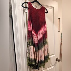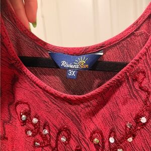 Red and green dress with intricate embellishments. Perfect for any occasion.