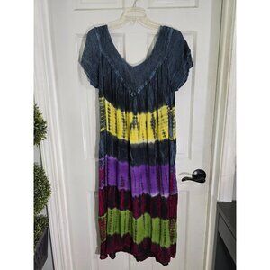 Riviera Sun Women's Multicolor Tie Dye Short Sleeve Dress Sequins Free Plus NWT