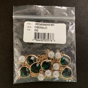 Rivka Friedman 18K Gold Clad Simulated Emerald & Diamond Necklace/36 Inch/NEW!