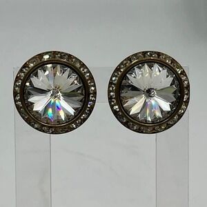 Rivoli Clear Faceted Rhinestone Pierced Halo Gold Tone Pierced Earrings