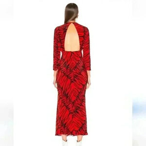Rixo Adriana Zebra Striped Animal Print Red Black Silk Maxi Dress Size Small