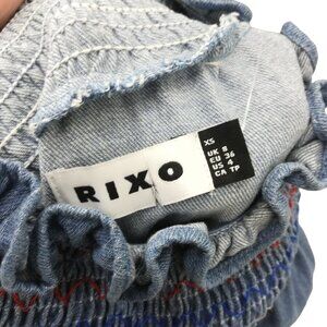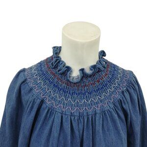 Rixo Azalea Smocked Denim Puff Sleeve Ruffle Mini Dress Size XS US 4 Prairie