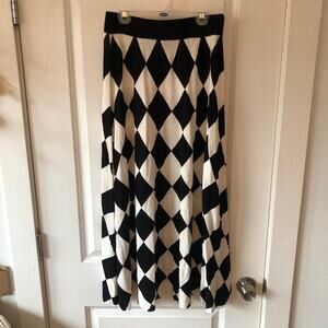 Rixo Brandy Womnen's Kint Midi Skirt Diamond Black Cream US 2 NEW WITH TAGS $302