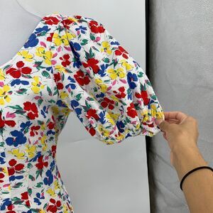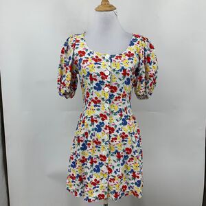 Rixo Dress Womens 0 Multi Linen Blend Floral Puff Sleeve Button Up A-Line Mini