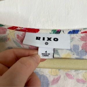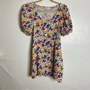 Rixo Floral Button Mini Short Puff Sleeve Dress White Pink 4