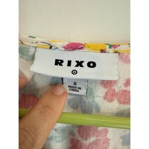 Rixo Floral Puff Sleeve Mini Dress Linen Blend Button Down Size 0