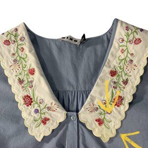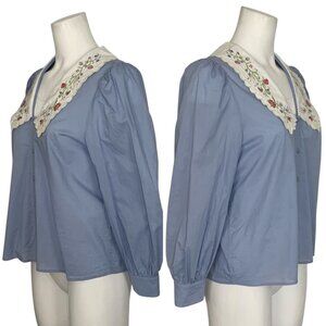 Rixo Lila Blouse S Cornflower Long Sleeve Button Up Embroidered Collar Prairie