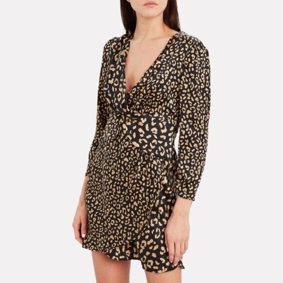 Rixo Lilly Leopard Print Silk Mini Dress Small