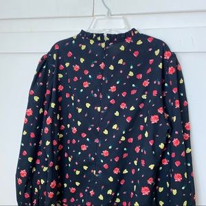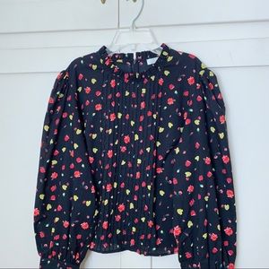 Rixo London Rose Floral Long Sleeve Black Blouse Large