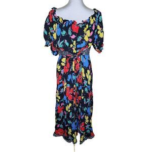 Rixo Target Peasant Maxi Multicolor Dress Womens Plus Size 24W Black Floral