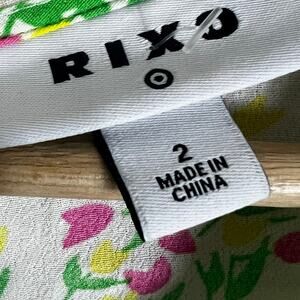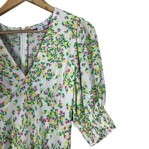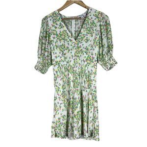 Rixo for Target Mini Dress Womens 2 Green Floral V-Neck Puff 3/4 Sleeve Coquette