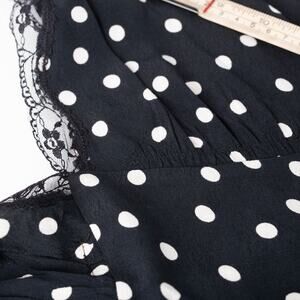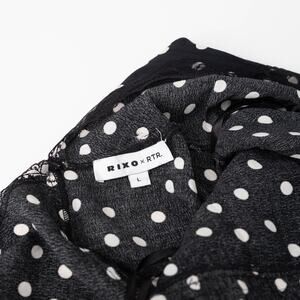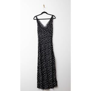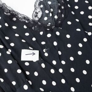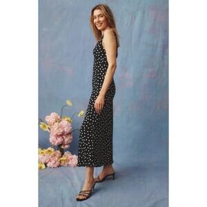 Rixo x RTR’s Sandrine Midi Dress brings vintage-inspired elegance with its bias-cut silhouette and playful polka dot pattern. Black polka dot (58% Viscose, 42% Rayon). Casual Dresses. V-neck. Sleeveless. Pull on Original Retail: $285 Condition: Pre-owned. The dress is gently worn and in like-new condition overall. There is one fabric imperfection on the back that appears to be a factory flaw (see last photo). Size: L Questions? Leave a comment below.