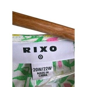 This Rixo x Target dress is a stylish and vibrant piece designed for women in size 20/20W. The knee-length dress features a flattering V-neckline with a 1/2 zipper closure and eye-catching puff sleeves in a green cream floral pattern. Made of lightweight rayon fabric, this fit & flare dress is perfect for various occasion.
