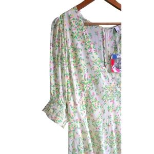 Rixo x Target Puff Sleeve Dress Women's 20/20W Green Cream Floral NWT