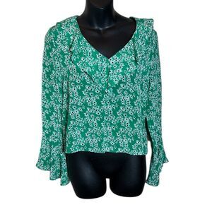 Rixo London women’s small Jane Ruffle blouse 100% silk floral flutter top