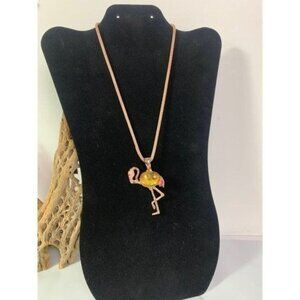 FEATURES: Rose Gold-Tone Flamingo with enameled face, rhinestone accents and marbled resin body on a mesh chain / MARKED: RMN on pendant and chain / See photos for more details