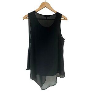 Ro & De Black Sheer Chiffon Asymmetrical Sleeveless Tank Size M Top Shirt Blouse