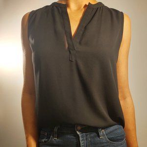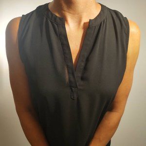Loose, flowy, lightweight blouse, sleeveless but very classy and sophisticated! V-neck in the front and a stylish V-shaped cut-out in the back to match.