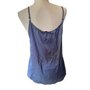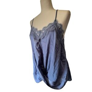 Ro & De Blue Satin Lace Cami Top Size M Adjustable Straps Draped Front Blouse