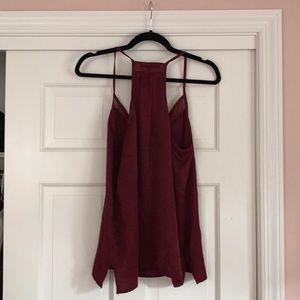 END OF SUMMER SALE!! Burgundy tank top with mesh panel detail on top. Racerback design. Soft, silky material (100% Polyester). Small stain on bottom of front but totally unnoticeable when worn.