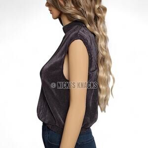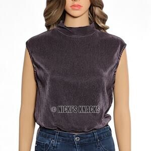 Ro & De Charcoal Pleated Sleeveless Mock Neck Open Back Top Blouse Size M