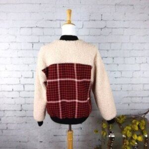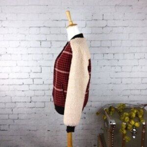 Ro & De Sherpa Sleeve Houndstooth Plaid Jacket Red Size XS