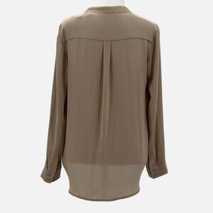 Ro & De Surplice Long Sleeve Hi Lo Hem Blouse in Tan - Size Small