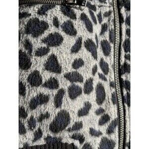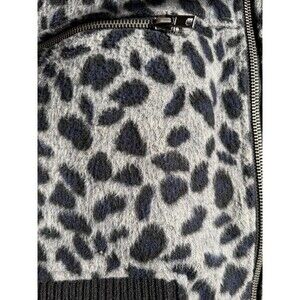 Ro & De Wool Blend Bomber Jacket Blue Black Leopard Print Size M Side Vent