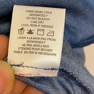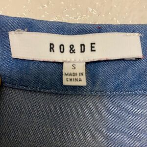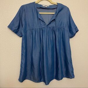 Ro + De blue Chambray blue Tie Neck Tencel Top coastal beachy lagenlook S