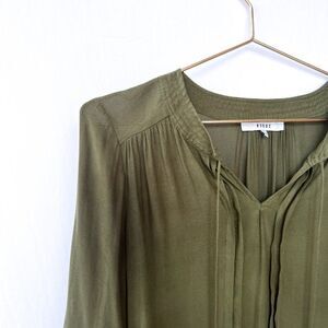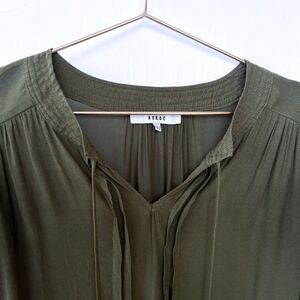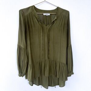 Ro&De Olive Green Long Sleeve Split Neck Peplum Peasant Top Small
