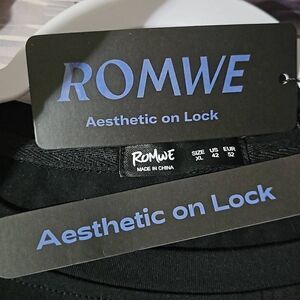ROMWE graphic T-shirt. New with tag. Front graphic says Juliet and Romeo. The back side says Love is Romantic and Happy Eternal. Size XL. Measurements approximate: Length 28 inches,Pit to Pit 24 inches. It never hurts to make offers.