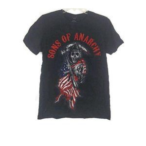 Sons of Anarchy Skull, Gun, Flag Graphic in Soft 100% Cotton