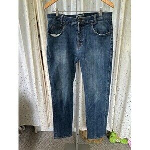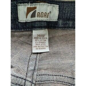 Road Men's Straight Leg 5 Pocket Dark Wash Factory Faded Denim Jeans 34x32