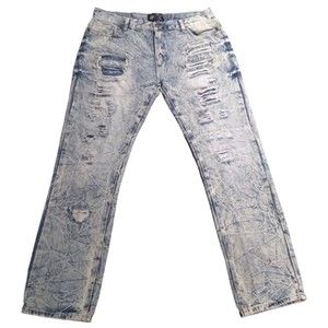 This listing is for a beautiful Road Narrows Men's Jeans Ripped Distressed Light Blue Straight Leg Size 40. Thsi item has about a 31" inseam. This item is in good condition. See pictures as part of description. If you have any questions, feel free to ask. Thank you!