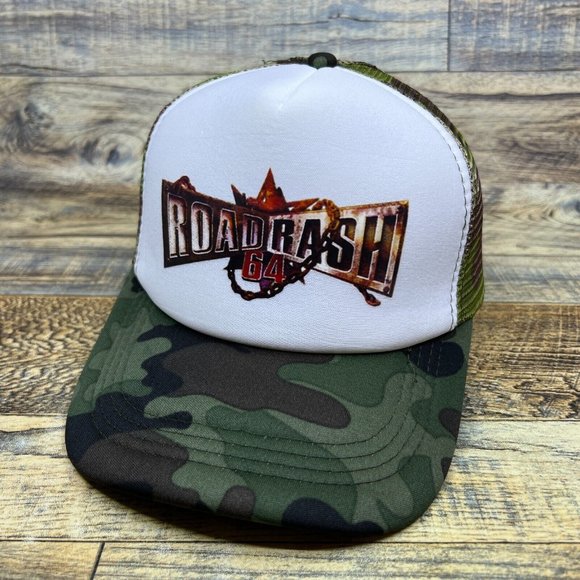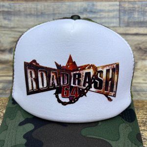 Road Rash 64 Mens Trucker Hat Camo Snapback Motorcycle 90s Video Game Retro Cap