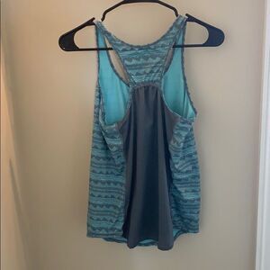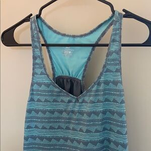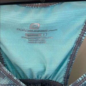 Grey and light blue color. Mesh on back for extra breathability. Perfect for running. Size s