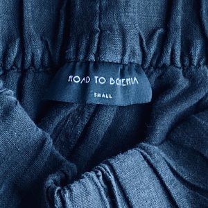 Road To Bohemia Black Pull On Linen Wide Leg High Rise Culottes Cropped Pants