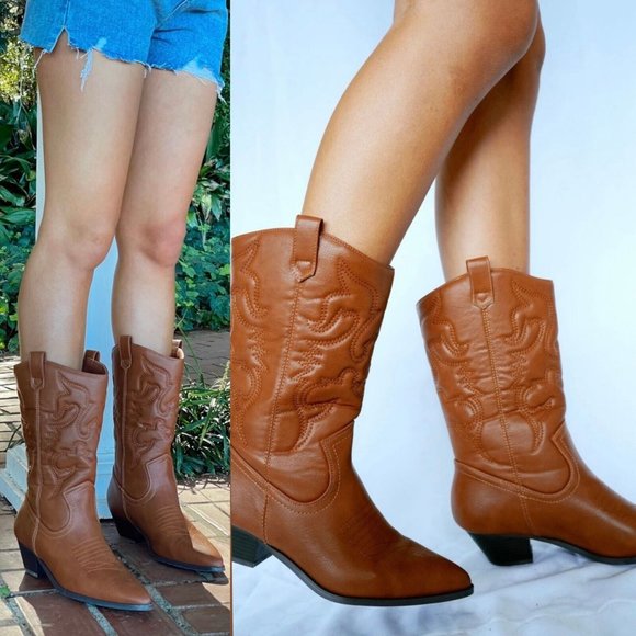 Road Wolf Boots 7 M Women Western Cowboy Outland Leather Rodeo Daisy Duke Cognac