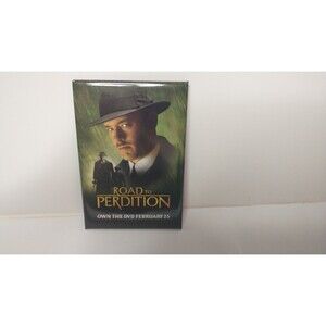 This Road to Perdition DVD Movie Promo Pinback Button featuring Tom Hanks is a must-have for any movie memorabilia collector. The pinback button is an original piece and perfect for those who love movies from the industry. The badge is a great way to show your love for the film without explicitly stating it. It is a collectible item and can be used as a unique addition to any collection.