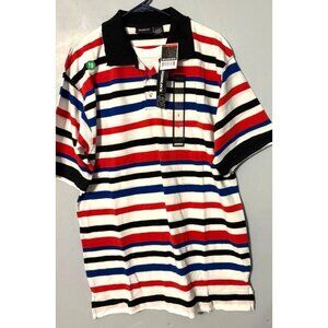 Roadblock Mens L Stripe Polo Shirt Red/Blue/Black/White Cotton Short Sleeve NWT