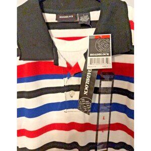 Roadblock Mens L Stripe Polo Shirt Red/Blue/Black/White Cotton Short Sleeve NWT!