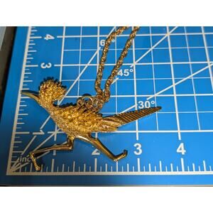 Roadrunner Circa 1970 Chunky Gold Plated On the Run Roadrunner Pendant Statement Necklace. Chain measures approximately 24" long. For the person who is constantly on the go, this adorable road runner would make the perfect gift. Pre-owned, this necklace is in excellent vintage condition.
