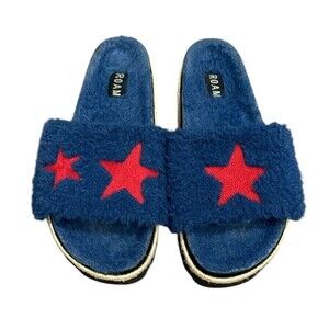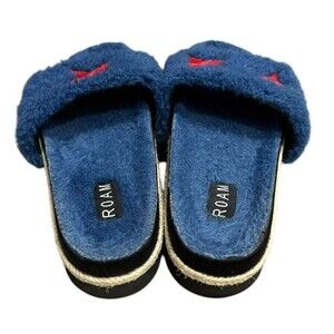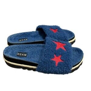 Roam Faux Fur Slipper Slides Navy Size 9 Stars‎