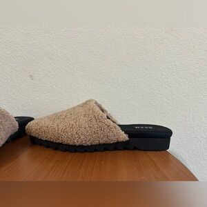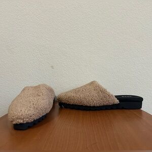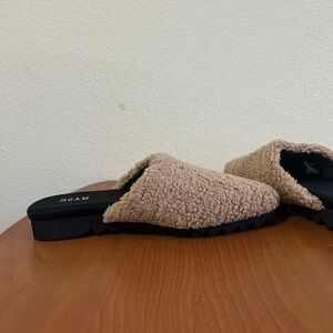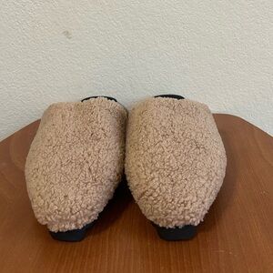 Roam Fuzzy Cap Mule Beige Black Faux Shearling Flats Women’s Size 6 Cushioned
