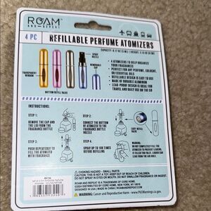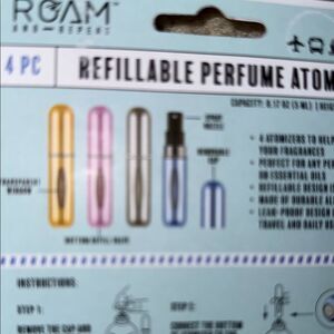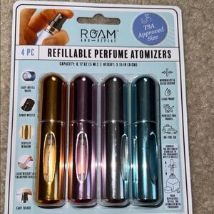 Roam and Repeat Refillable Perfume Atomizers 4pcs Set NIP TSA APPROVED