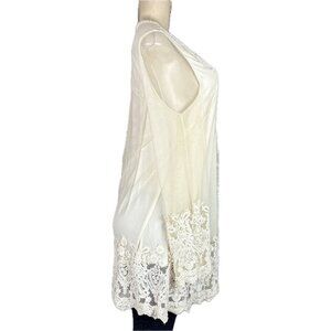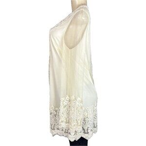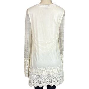 Roaman's 12W Cream Sheer Mesh Lined Crochet Bead Detail Sheer Long Sleeve Blouse