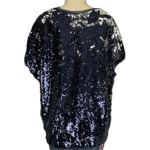 Roaman's 16W Navy Blue Metallic Changing Sequin V-Neck Lined Short Sleeve Blouse