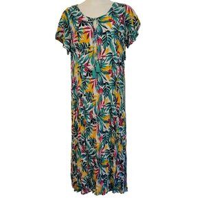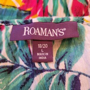 Roamans 18 20 Tropical Green Floral A Line Maxi Dress Modest Long Summer Keyhole